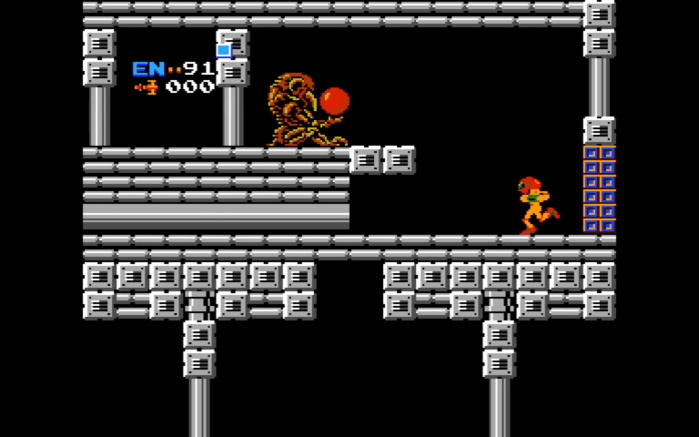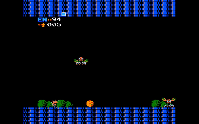 And as Metroid puts its efforts into confusion and disorientation, it of course isn’t above changing its own internal rules. The titular metroids — gated in the final area, only accessible once you’ve explored the entire map, faced two challenging bosses and virtually every other enemy the game has to offer — are its most terrifying invention. Every enemy in the game moves in a predictable pattern, with either smooth arcs or right angles easy to jump, duck, or run past. The metroids, on the other hand, make a beeline straight for Samus’s head. Fail to freeze them quickly enough and they’ll attach and immediately start draining the life (or, well, energy) from Samus’s body (or, well, suit… put a pin in this one). The only way to detach them is to curl into a ball — a strangely fetal response to a deadly threat — and drop bomb after bomb until they detach. And then you’ll have a split second to freeze them again before they reattach again and again and again. Metroids are horrifying and monstrous in a way very few video game enemies have ever felt to me; the fact that they’re framed as largely innocent — a kind of native fauna with an innate survival drive manipulated by malicious forces — also makes them feel strangely tragic. Let’s put a pin in that as well. Perhaps, just maybe, there’s more to them than it seems.